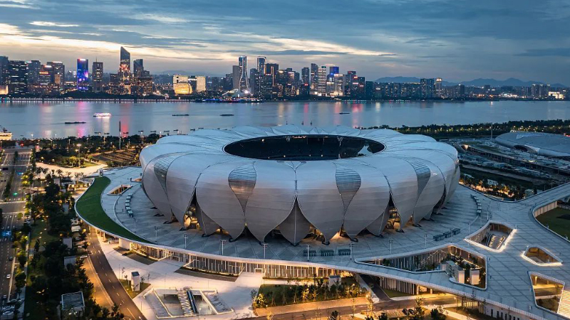 比賽場館是舉辦一場精彩賽事的前提,巨力索具參與建設(shè)的杭州奧體中心體育場(以下,簡稱“杭州奧體中心)是杭州亞運(yùn)會開幕場館及重要比賽場館之一。主體的運(yùn)動場館外形似蓮花,造型動感飄逸,由28片大花瓣和27片小花瓣組成。項(xiàng)目采用巨力索具高強(qiáng)度鋼拉桿和高釩索,增強(qiáng)花瓣面外穩(wěn)定。該造型取意于杭州絲綢紋理與紡織體系,建筑體態(tài)源于錢塘江水的動態(tài),擁有簡潔的花瓣單元,猶如一朵美麗的蓮花綻放于錢塘江畔。