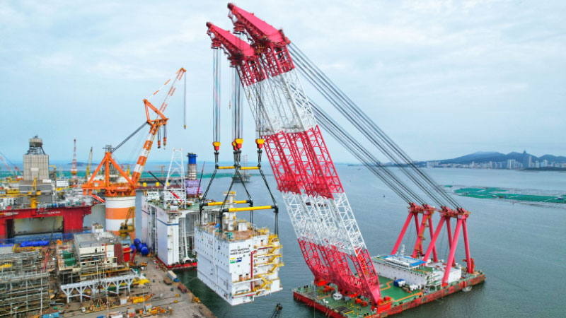 近日,中集來福士浮式生產儲油船(FPSO)重為3669噸的S20、2960噸的P60、2766噸的P20三大模塊吊裝完成。巨力索具為其提供了承載量為3000噸、2500噸的平衡梁梁式吊具、卸扣、無接頭繩索等產品,并為保證吊裝的順利進行制訂了嚴謹的吊裝方案。 巨力索具以“創造世界上卓越的全能索具,讓世界輕松起來!”為使命,一直牢記初心,不斷優化管理,致力于科研創新,以高質量創新引領高質量發展,全方位滿足客戶需求!