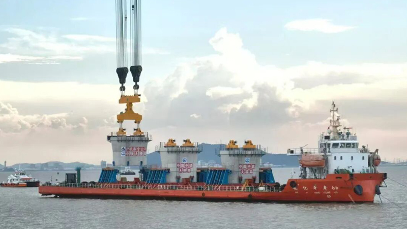在杭州灣跨海鐵路橋中航道橋建設現(xiàn)場,高7米,重達500噸的首節(jié)預制墩身節(jié)段在“盈尚1”起重船的吊裝下,被精準架設到108號墩上,巨力索具再次為世界級工程項目添力!